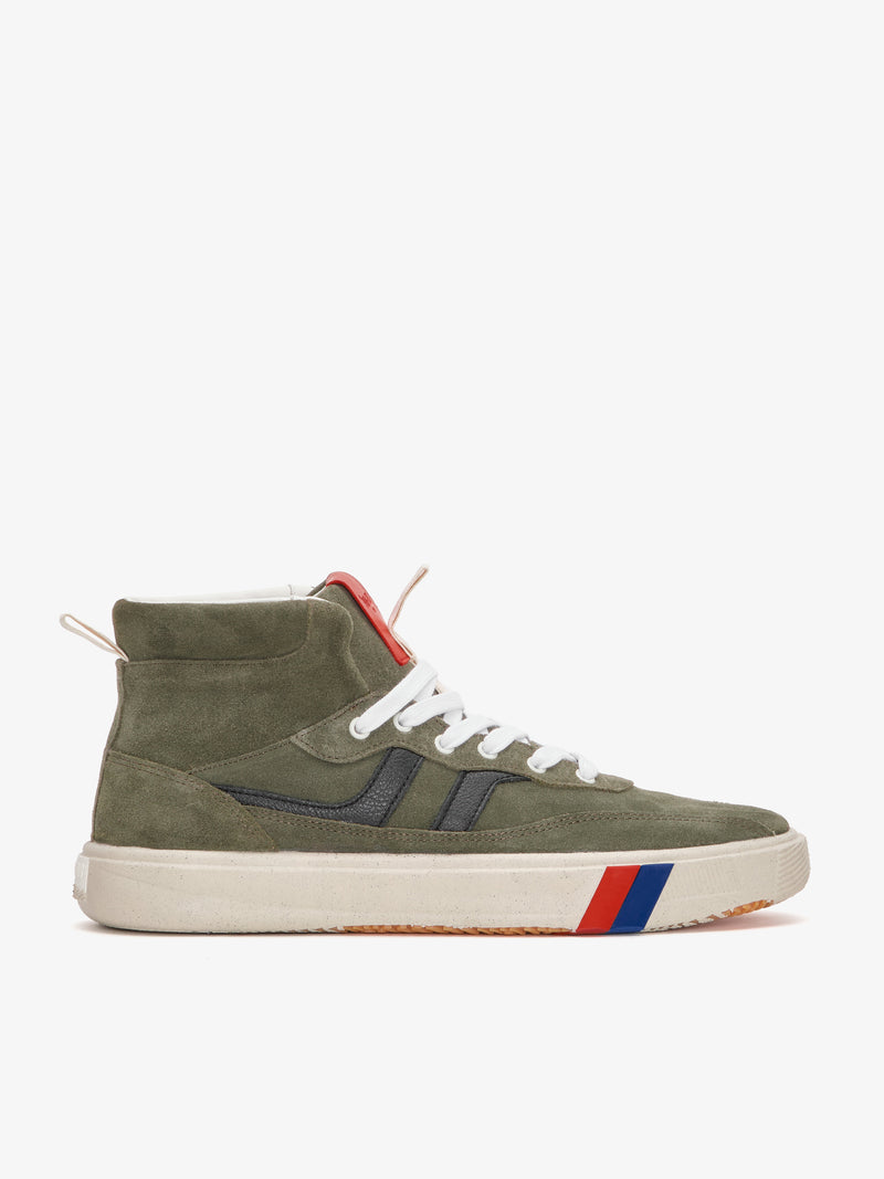Sneaker high-top realizzata con tecnologia Rubber Fusion®, caratterizzata da una tomaia in suede con cuciture rovesciate e interamente foderata in pelle per garantire un comfort avvolgente e uno stile autentico. Completa il design la suola artigianale in gomma con base Vibram®️.
