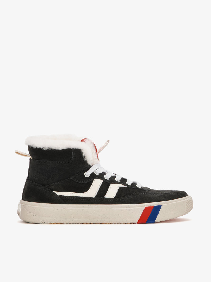 Sneaker high-top che fonde tradizione e innovazione in una silhouette intramontabile. Realizzata con tecnologia Rubber Fusion®, presenta tomaia in suede con inserti in pelle e cuciture rovesciate, abbinata a fodera e soletta in vero montone per un comfort avvolgente e un calore ideale per le stagioni fredde. La suola artigianale in gomma naturale, nata dalla fusione tra lastra Vibram® e Gomma Spugna anni ’70, offre grip e flessibilità per un utilizzo quotidiano.